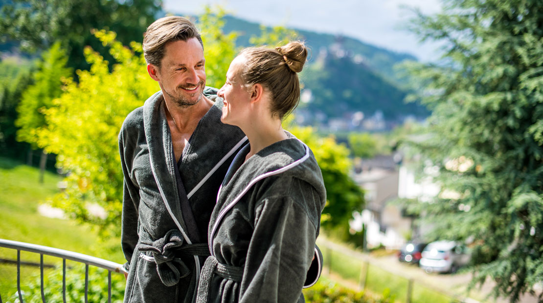 Zusätzlich finden Sie angeschlossen an den Spa-Bereich auch eine überdachten Sonnenterrasse mit gemütlichen Deckchairs. Genießen Sie den einmaligen Ausblick auf Cochem, die Mosel und die Reichsburg und lassen Sie sich von den wärmenden Sonnenstrahlen verwöhnen.